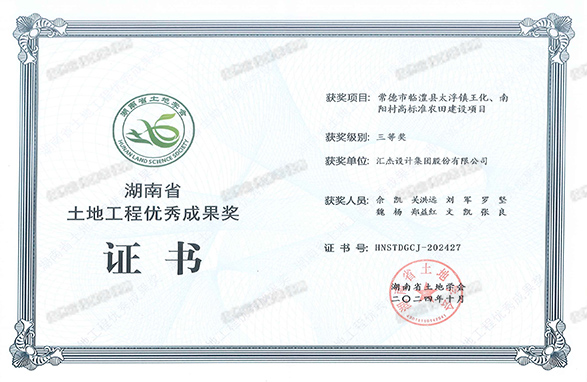 2024年,常德市臨澧縣高標準農田建設項目榮獲湖南省土地工程優秀成果獎